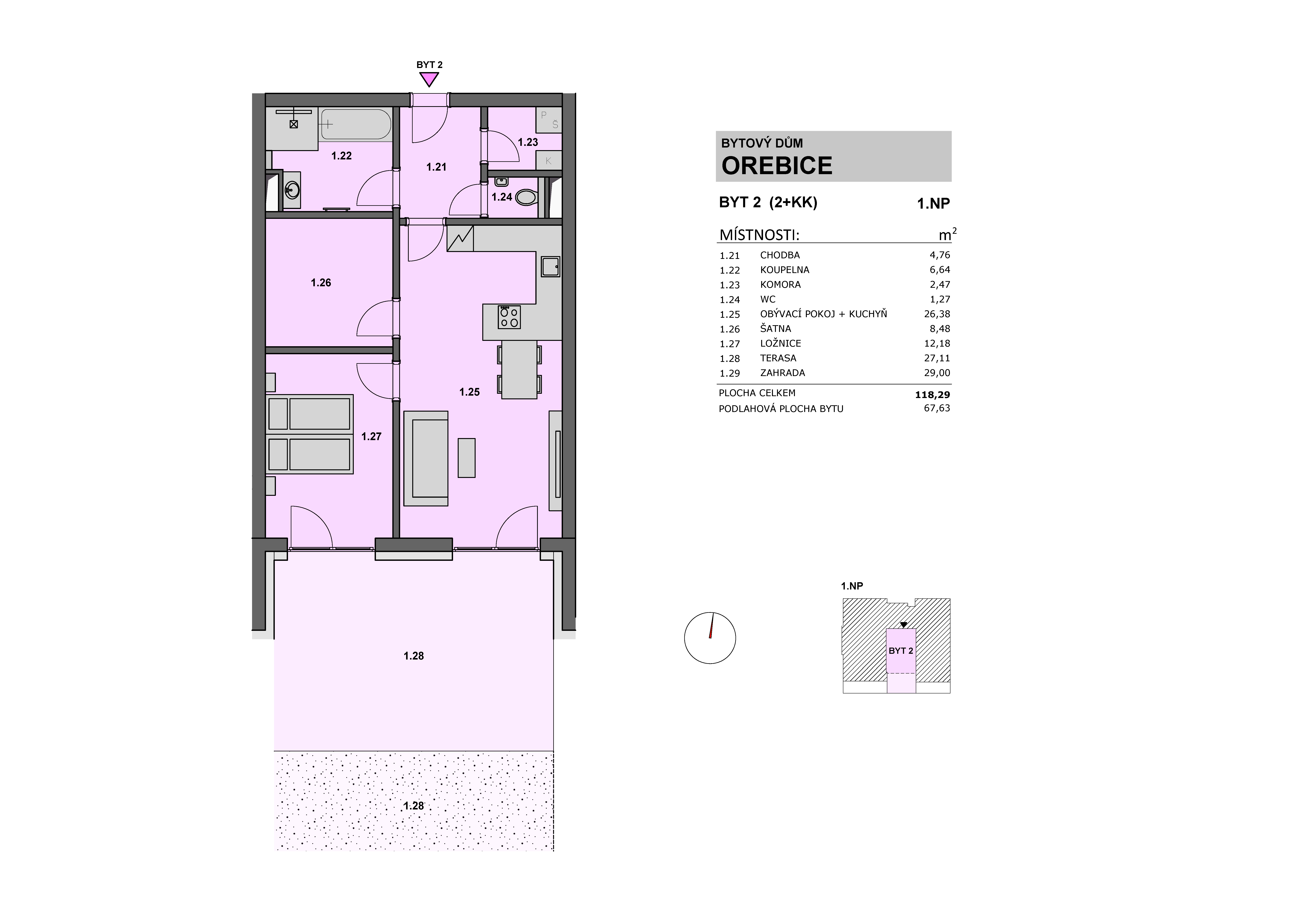 | 2 | 1 NP | 2+KK | 68 m2 | 27 m2 | 29 m2 | - | 1 | - | Schéma | prodáno |