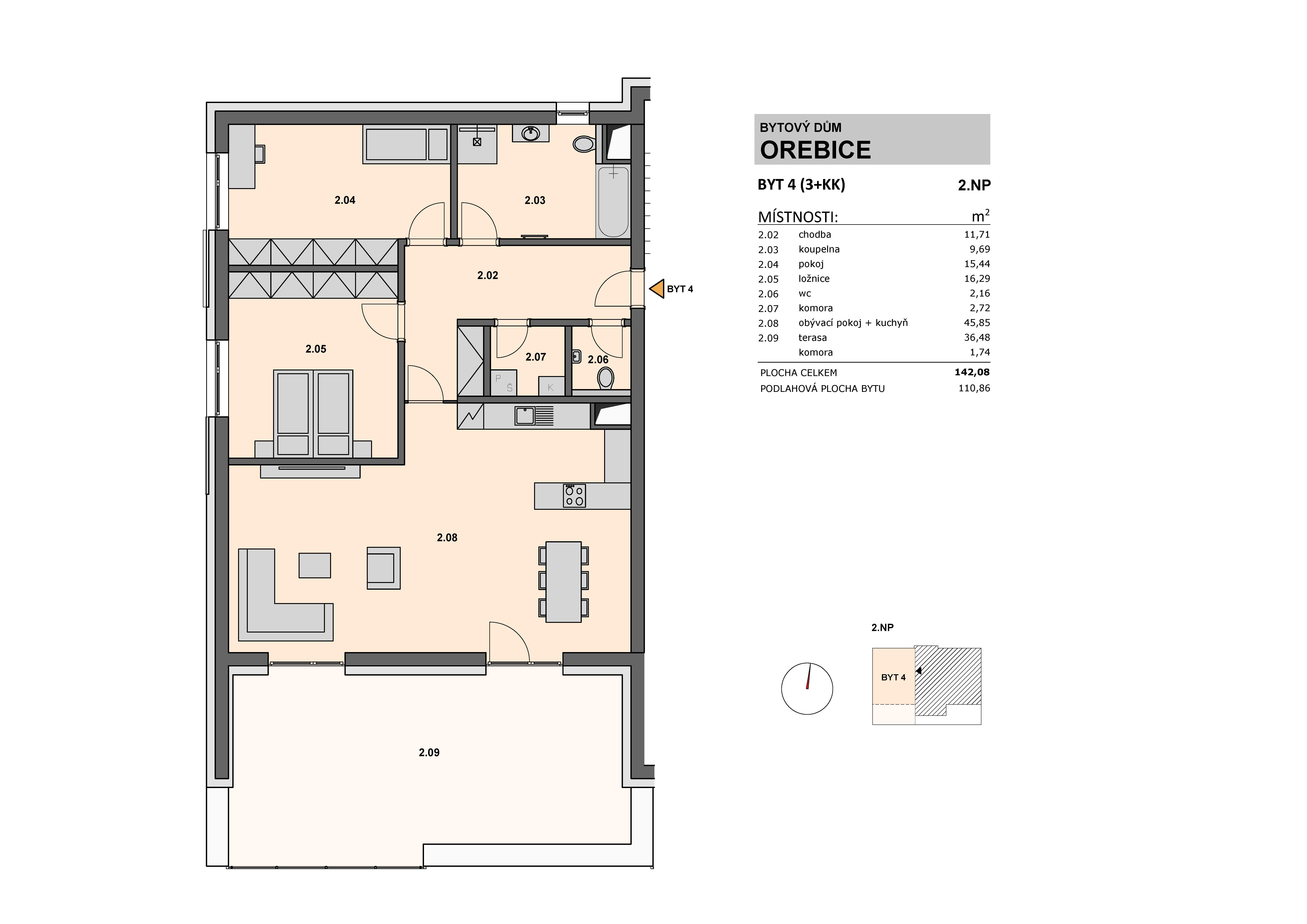 | 4 | 2 NP | 3+KK | 111 m2 | 36 m2 | - | 1,74 m2 | 2 | - | Schéma | prodáno |