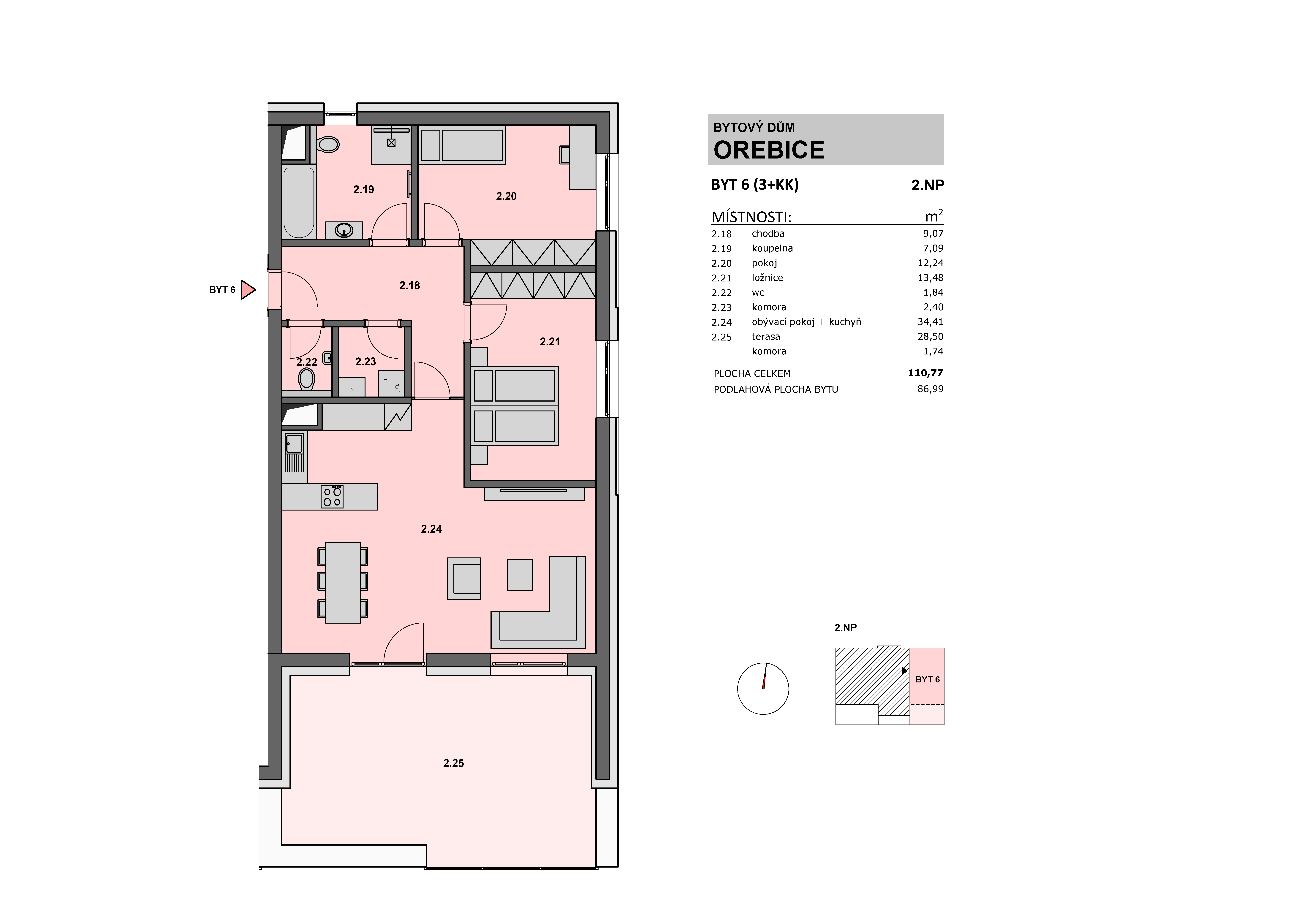 | 6 | 2 NP | 3+KK | 86,26 m2 | 28,52 | - | 1,74 m2 | 2 | - | Schéma | prodáno |