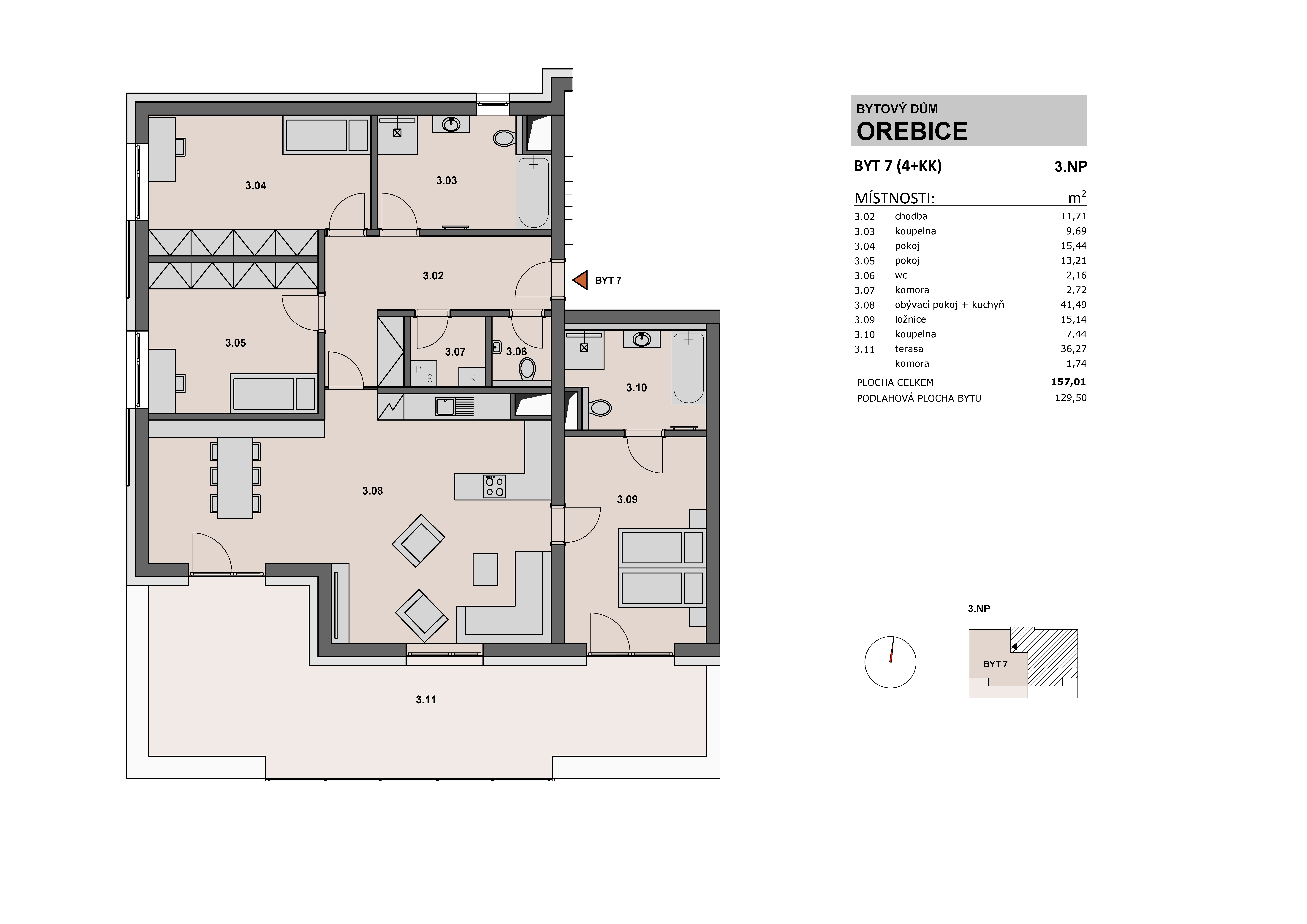 | 7 | 3 NP | 4+KK | 130 m2 | 36 m2 | - | 1,74 m2 | 2 | - | Schéma | prodáno |