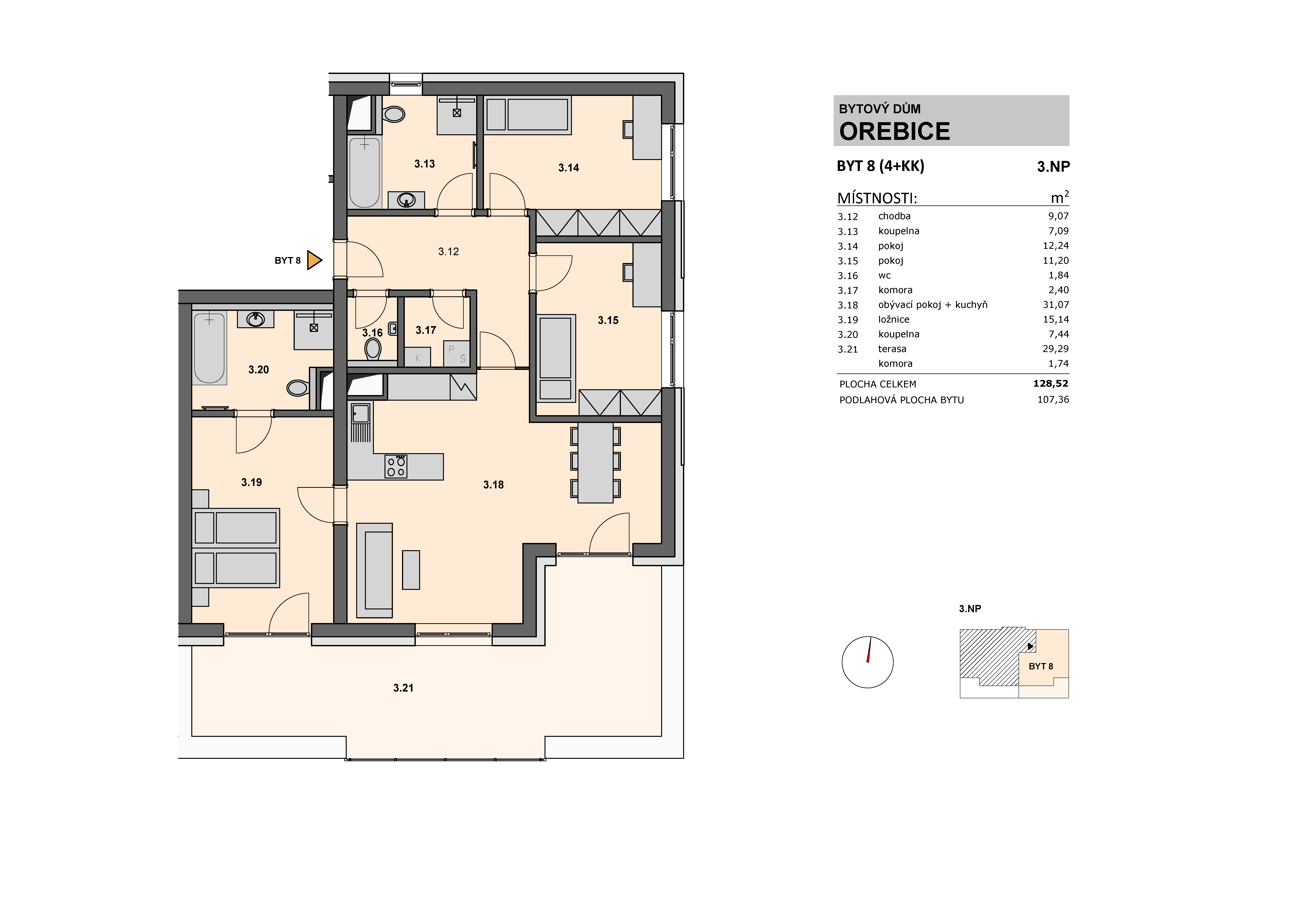 | 8 | 3 NP | 4+KK | 103,76 m2 | 29,29 m2 | - | 1,74 m2 | 2 | 11.413.600 | Schéma | volný |